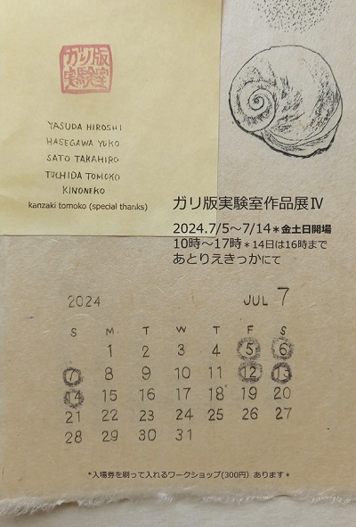 ガリ版の活用を模索する作品、版画としてのガリ版作品など5名の作品+10-48net主宰神崎さんの作品を展示。