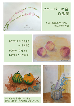 あとりえきっかで活動中の水彩画サークル「クローバーの会」の作品展。