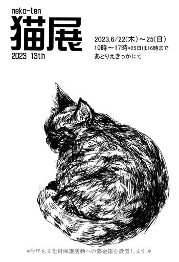 長年猫展では、収益の一部と募金箱から震災で壊れた文化財の修復宛てに寄付をしてきました。後回しの部門だと思ったからです。