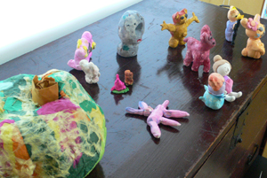 あとりえきっかの子ども教室「かようびの会」の子どもたちの作品を展示しています。