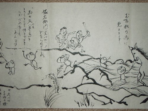 おそらく、それを伝える一番最近の書き物と思われる、「ふるさと歴史散歩」を参考にして絵巻物と、豆本をつくりました。会場で見てください。