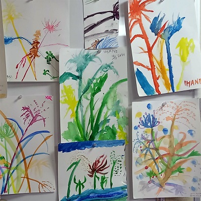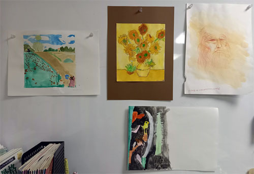写真は、子どもたちの模写。モネ、ダビンチ、クレー、ゴッホ。