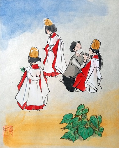 今年は、お稚児様の準備をする葵幼稚園の子たちを描きました。