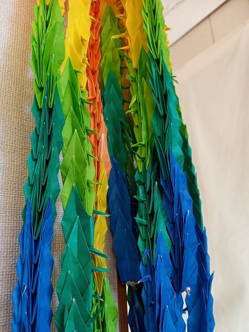 夏ごろから教室で折っていた千羽鶴、千羽揃わなくても「たくさん」でいいよね、と保険を掛けながら作っていましたが、なんとか完成。